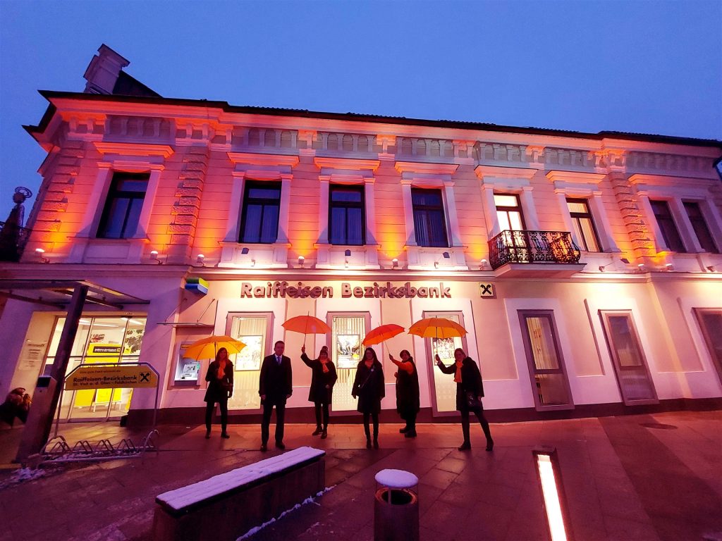 Die Raiffeisen-Bezirksbank St. Veit a.d. Glan – Feldkirchen und der Soroptimist Club St. Veit/Glan eröffneten anlässlich der Aktion „Orange the World“ eine Kunstausstellung in der Raiffeisenbank St. Veit. Öfter als jede zweite Woche kommt es in Österreich zu einem Frauenmord. Die UNO und Soroptimist rücken mit der Initiative „Orange the World“ das Thema „Stoppt Gewalt an Frauen“ verstärkt in das Bewusstsein der Menschen. 150 Gäste sind der Einladung gefolgt.