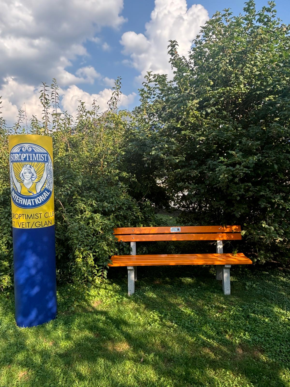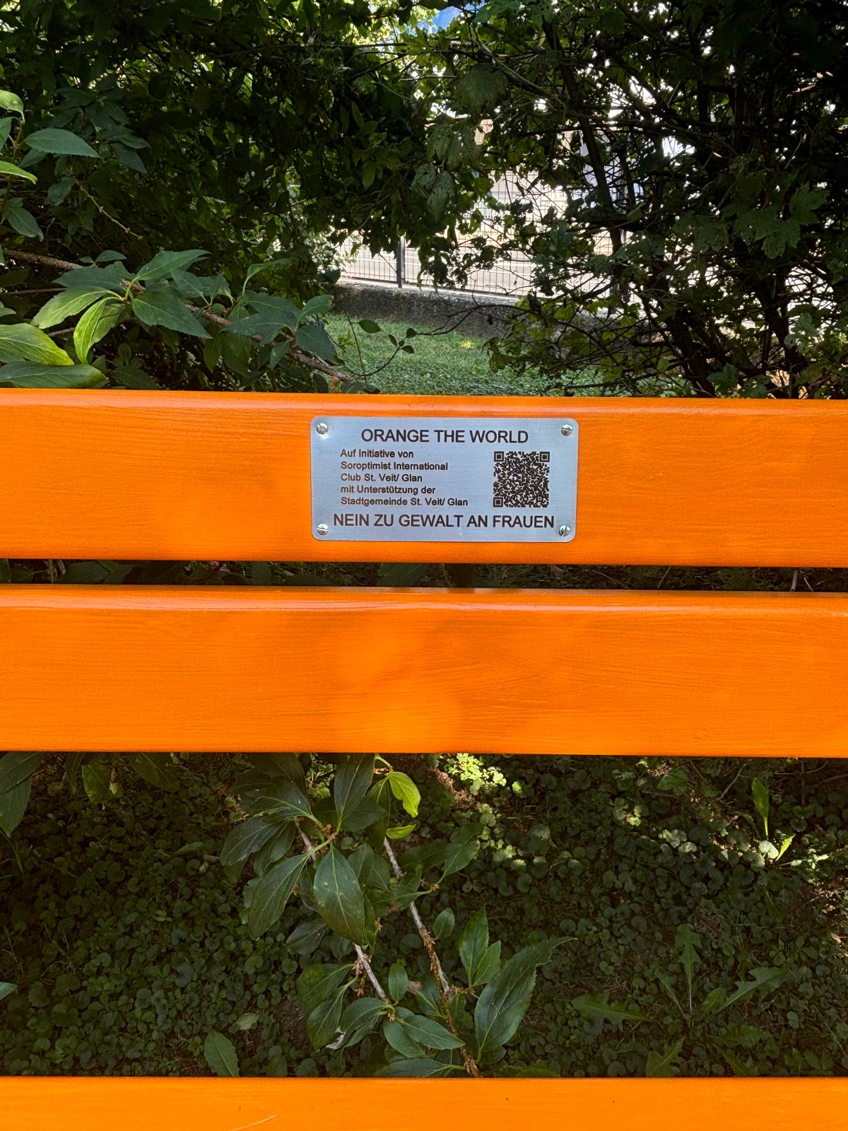 Der Soroptimist Club St.Veit/Glan, hat gemeinsam mit der Stadtgemeinde zwei orangefarbene Sitzbänke im Skulpturenpark und im Grabengarten als Symbol gegen Gewalt an Frauen und Kinder aufgestellt. Auf den Bänken befindet sich ein QR-Code, der weitere Informationen hierfür bereitstellt – unter anderem einne Hinweis zur Frauenhelpline gegen Gewalt (0800/222 555).